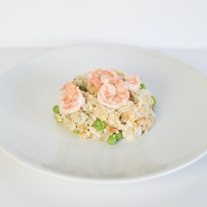 Riso saltato con gamberi, uova, piselli – No glutine