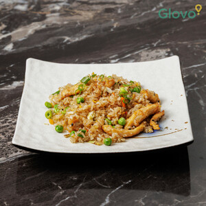 Riso saltato con pollo, uova, pepe, agropiccante